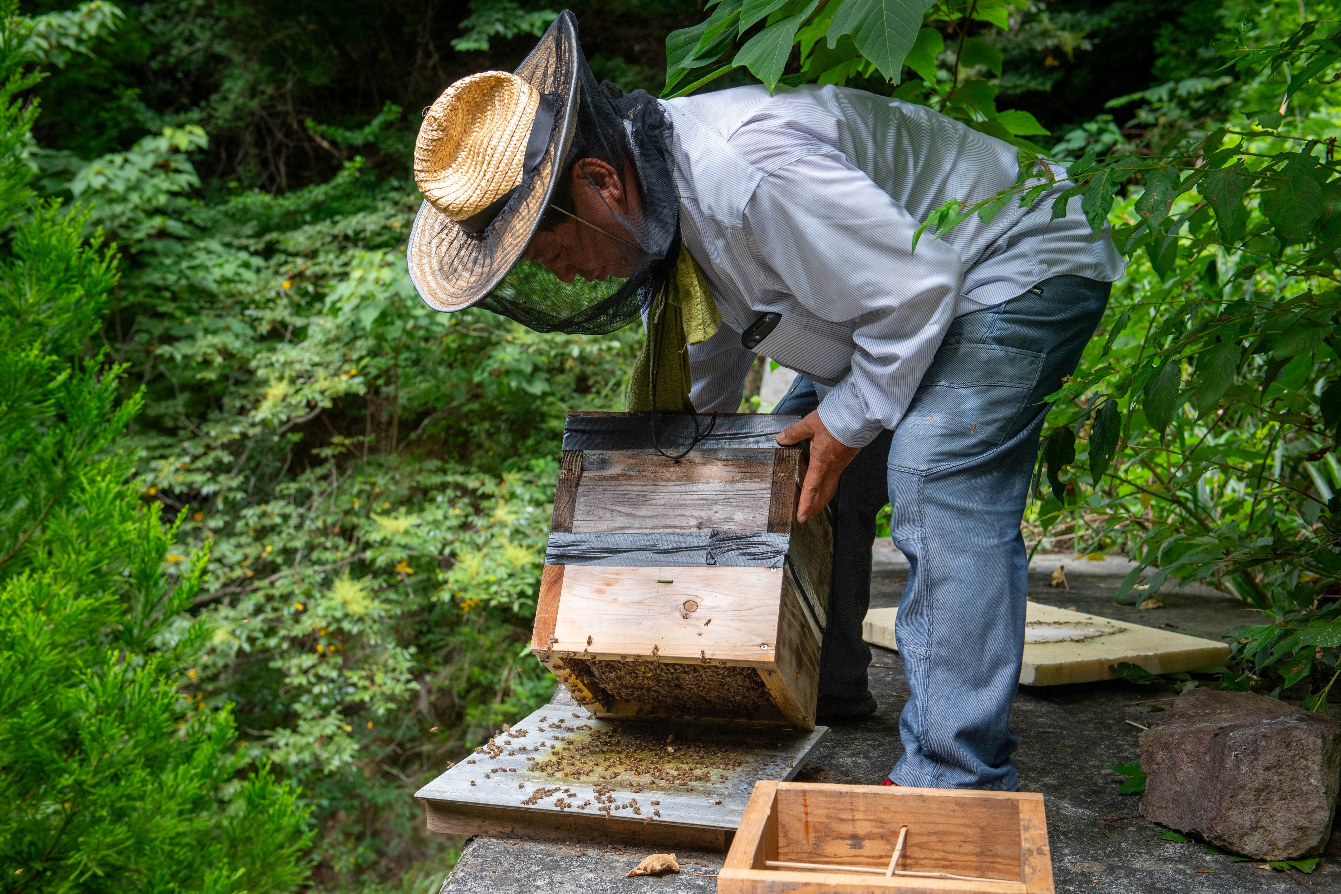 日本ミツバチは、日本に古来より生息する在来種のミツバチ。 一匹あたりの採蜜量は西洋ミツバチの10分の1以下で、とても繊細で環境に敏感な生き物です。 そのため、近年異常気象や、森林減少、農薬などにより減少の一途を辿っており、絶滅が危惧されております。 また、養蜂は極めて難しく、日本ミツバチの蜜は「幻のはちみつ」とも称されるほど希少。採蜜量が少ない為日本ミツバチの蜂蜜は滅多に市場に出回りません。